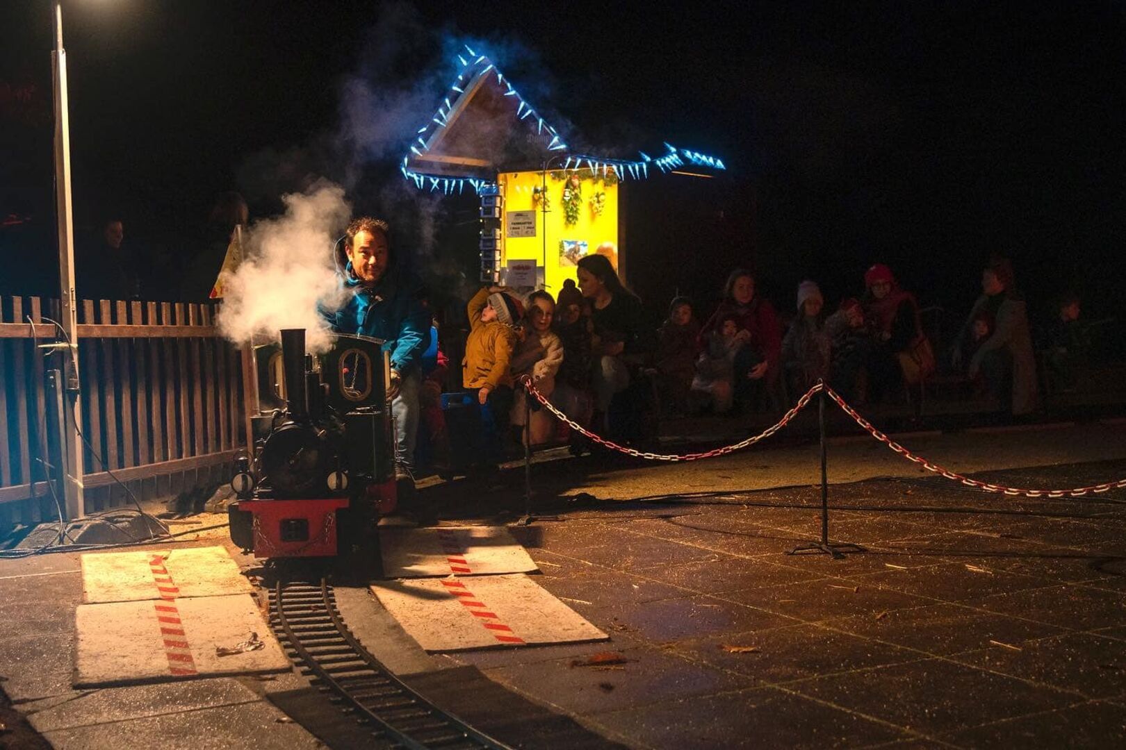 Die Weihnachstadt findet ausschließlich draußen statt. Es gibt jedoch einige überdachte Bereiche, die Schutz vor dem Wetter bieten.