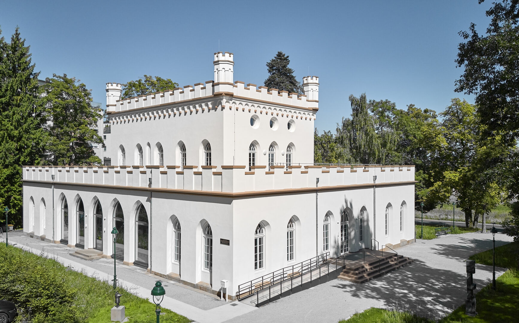 Die Sanierung des Gotischen Hauses geht zu Ende. 2025 wird das Museum wiedereröffnet. Seine Fassade zeigt sich in der historischen Formensprache der im 19. JahrhundertTudor-Gotik, einzigartig auf dem europäischen Festland, dessen „Gotische Häuser“ in englischen Landschaftsgärten (s. Puschkin, Pulawy oder das Gartenreich Dessau-Wörlitz) die Architektur der deutschen Gotik, teils mit anderen Stilen kombiniert, zitieren.