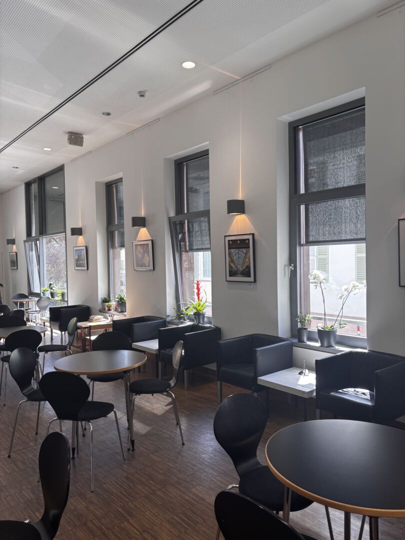 Besonders wichtig war dabei das Thema Ruhe: Durch spezielle, schallabsorbierende Materialien und teilweise abgeschirmte Bereiche ist es gelungen, trotz der zentralen Lage im lebendigen Erdgeschoss eine deutlich ruhigere Atmosphäre zu schaffen.
